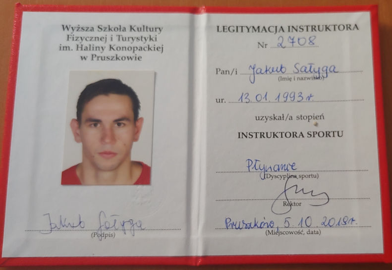 Jego największą zaletą jest podejście i nawiązywanie świetnych relacji ze swoimi podopiecznymi. W prowadzeniu wyznaje zasadę "wolniej ale do celu". Stara się od początku dopasować plany treningowe do Waszych możliwości i potrzeb, niezależnie od tego czy jesteś osobą początkującą czy zaawansowaną. Hobby poza pływaniem i treningiem siłowym to piłka nożna i bieganie.